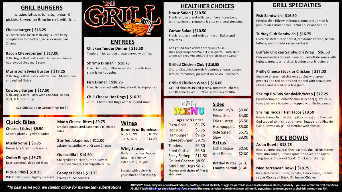 Welcome to The Grill at Clemson Marina, a delightful culinary destination nestled at 150 Clemson Marina Dr, Seneca, SC. This welcoming spot serves up a diverse menu designed to cater to all palates.